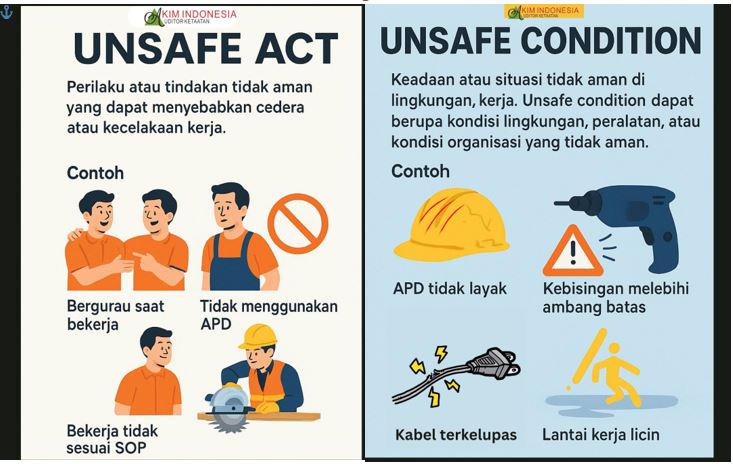 "Perilaku atau tindakan yang dilakukan pekerja (sengaja atau tidak) yang menyimpang dari prosedur keselamatan, meningkatkan risiko kecelakaan"
